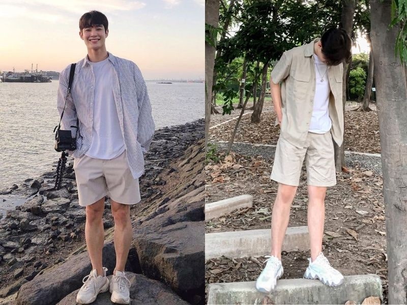 - Một bộ set đi biển cho nam nên bao gồm áo phông hoặc áo sơ mi với họa tiết đơn giản, kết hợp cùng quần short năng động. Các màu sắc như trắng, xanh dương, xám hay các tone pastel luôn là lựa chọn an toàn. Đồng thời, chất liệu cotton hoặc linen giúp mang lại cảm giác mát mẻ, thoải mái dù trong điều kiện nắng nóng.